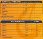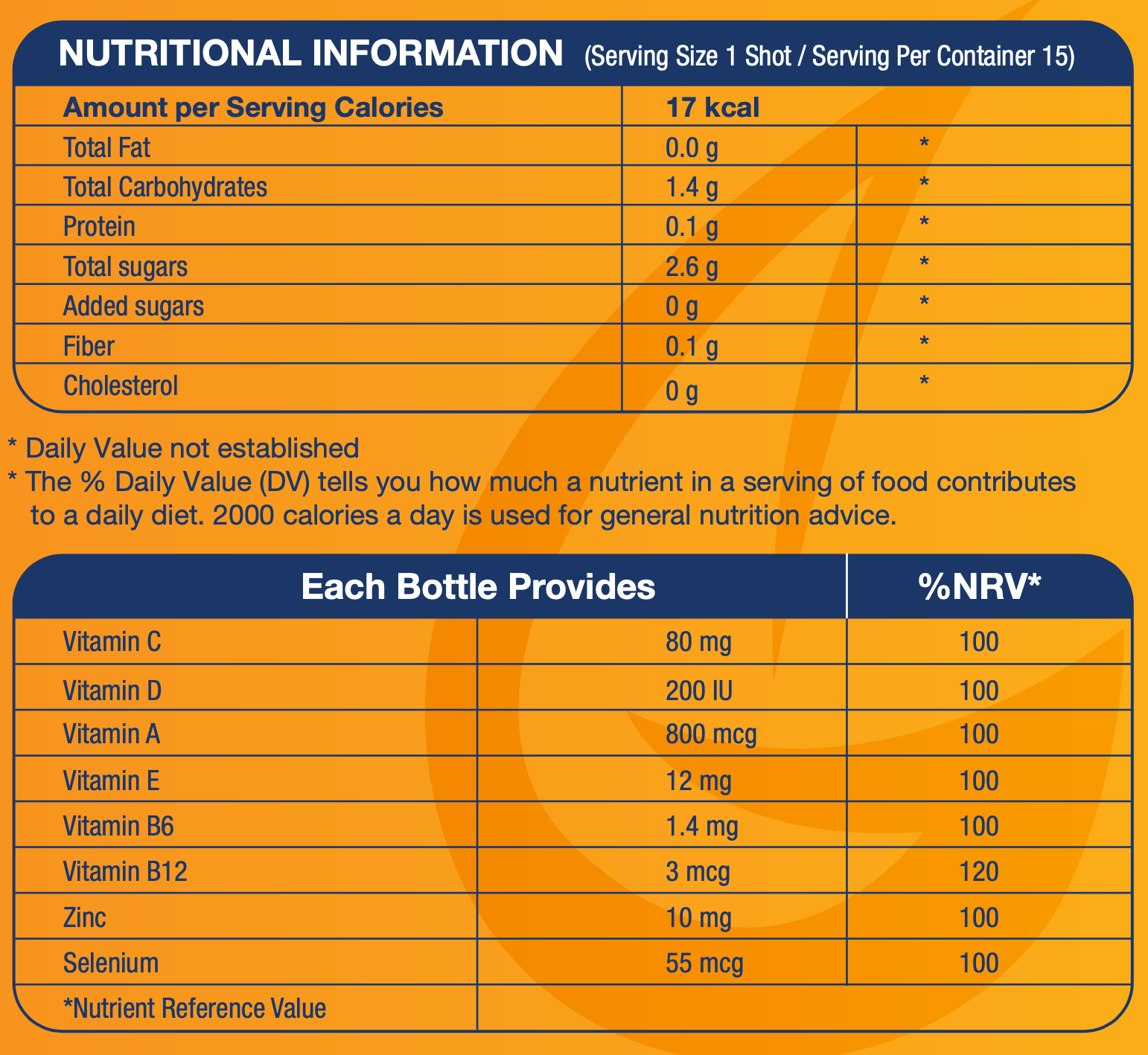 - فيتامينات (أ ٨٠٠ ميكروجرام، ج ٨٠ مجم ، هـ ١٢ مجم ، د ٢٠٠ وحدة دولية ، (ب ٦) ١.٤مجم ، (ب ١٢) ٣ ميكروجرام.