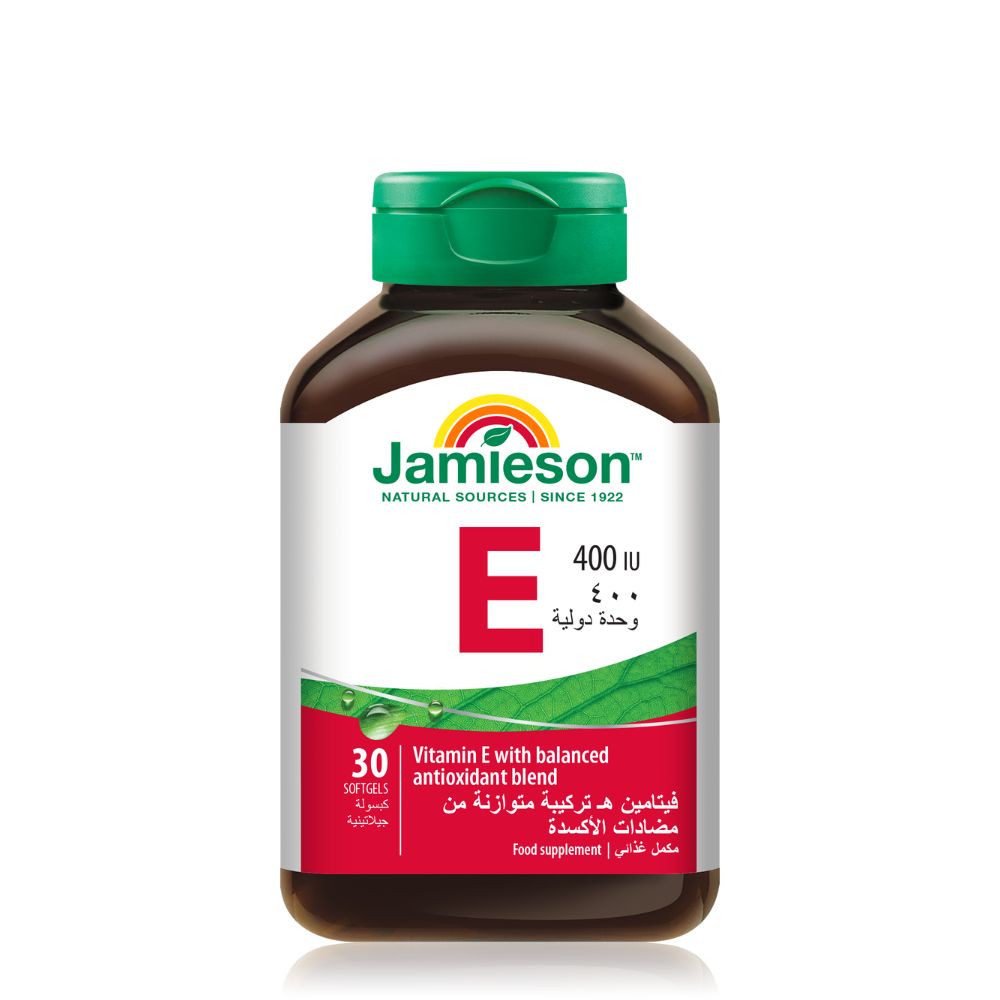 - فيتامين E من جاميسون بجرعة 400 وحدة دولية هو مكمل غذائي عالي الجودة مصمم لتوفير دعم مضاد للأكسدة وتعزيز الصحة العامة. تحتوي كل كبسولة جيلاتينية على 400 وحدة دولية من فيتامين E الطبيعي.