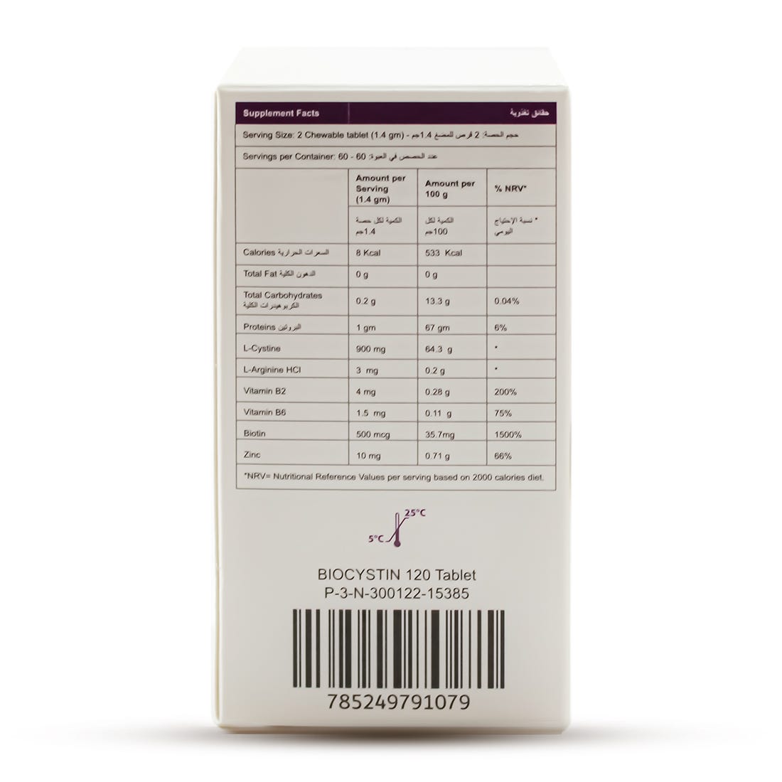 - Biocystine is an Italian product for treating hair loss. It contains a combination of vitamins and zinc, and is the only product that contains biotin.