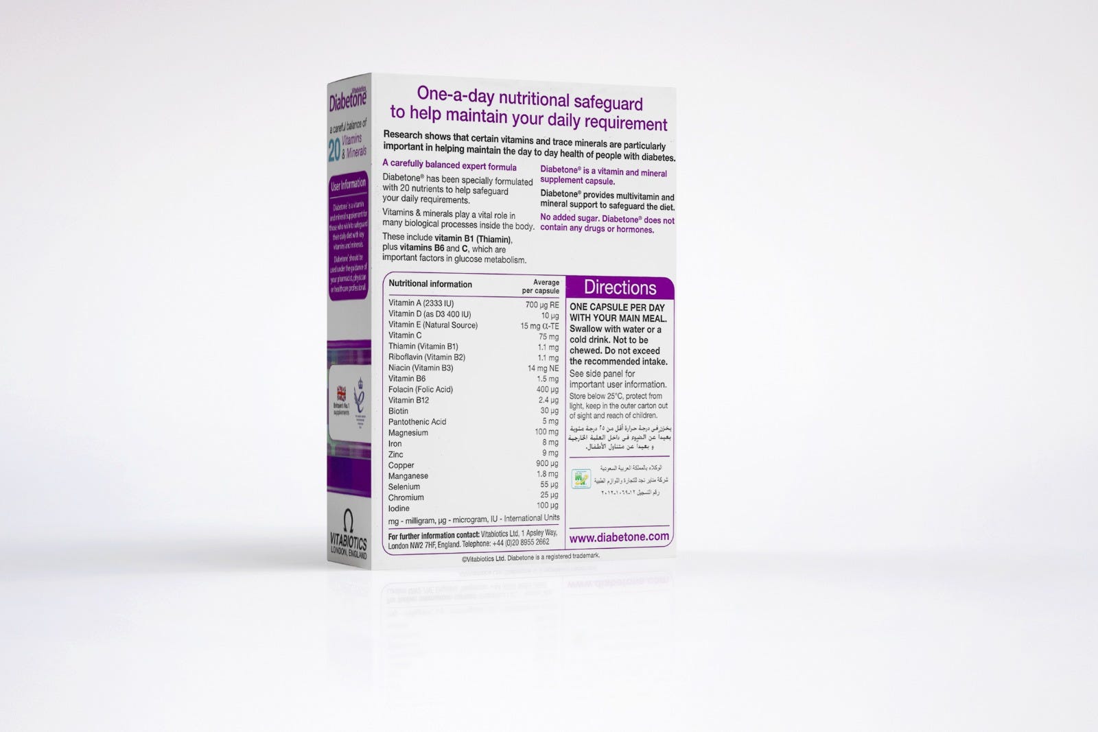 - Diabetone is a vitamin and mineral supplement for people who would like to maintain important vitamins and minerals in their daily diet.