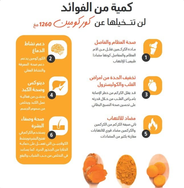 It is composed of curcumin extracted from the raw turmeric plant at a rate of 105 mg per piece. It contains powerful antioxidants that contribute to the prevention of many infections, in addition to purifying the body of toxins and relieving pain.
