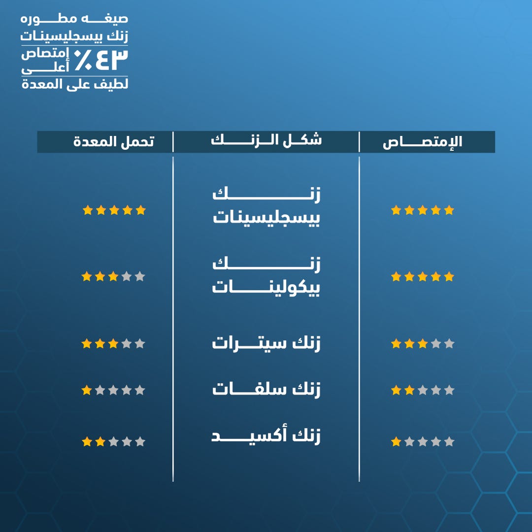 • Up to 43% higher absorption compared to zinc oxide or citrate