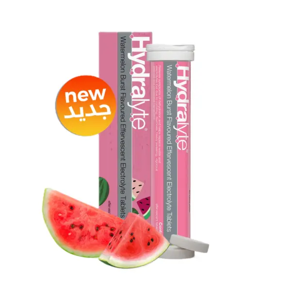 Hydralyte effervescent electrolyte tablets with watermelon flavour are designed to support hydration by helping replenish fluids and essential electrolytes. The tablets dissolve easily in water to create a refreshing watermelon flavoured drink, suitable for daily use during hot weather, travel, or after physical activities.