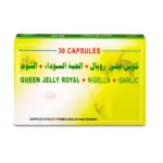 Black Seed and Garlic with Royal Jelly capsules combine three unique natural extracts; royal jelly, black seed, and garlic extract. This integrated formula is designed to support overall health, offering a range of benefits that boost energy, support the immune system, and improve physical and sexual performance.
