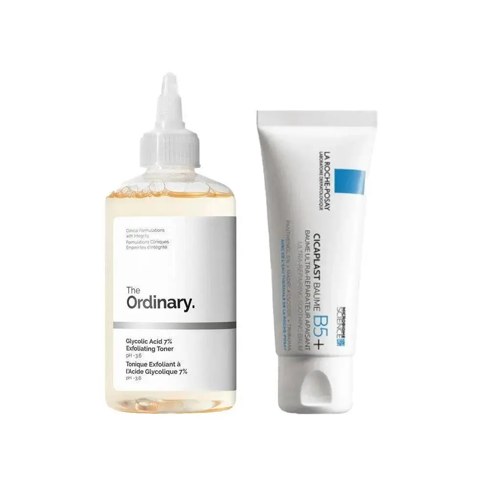 A toner containing glycolic acid, which is an acid used to exfoliate and renew the skin.